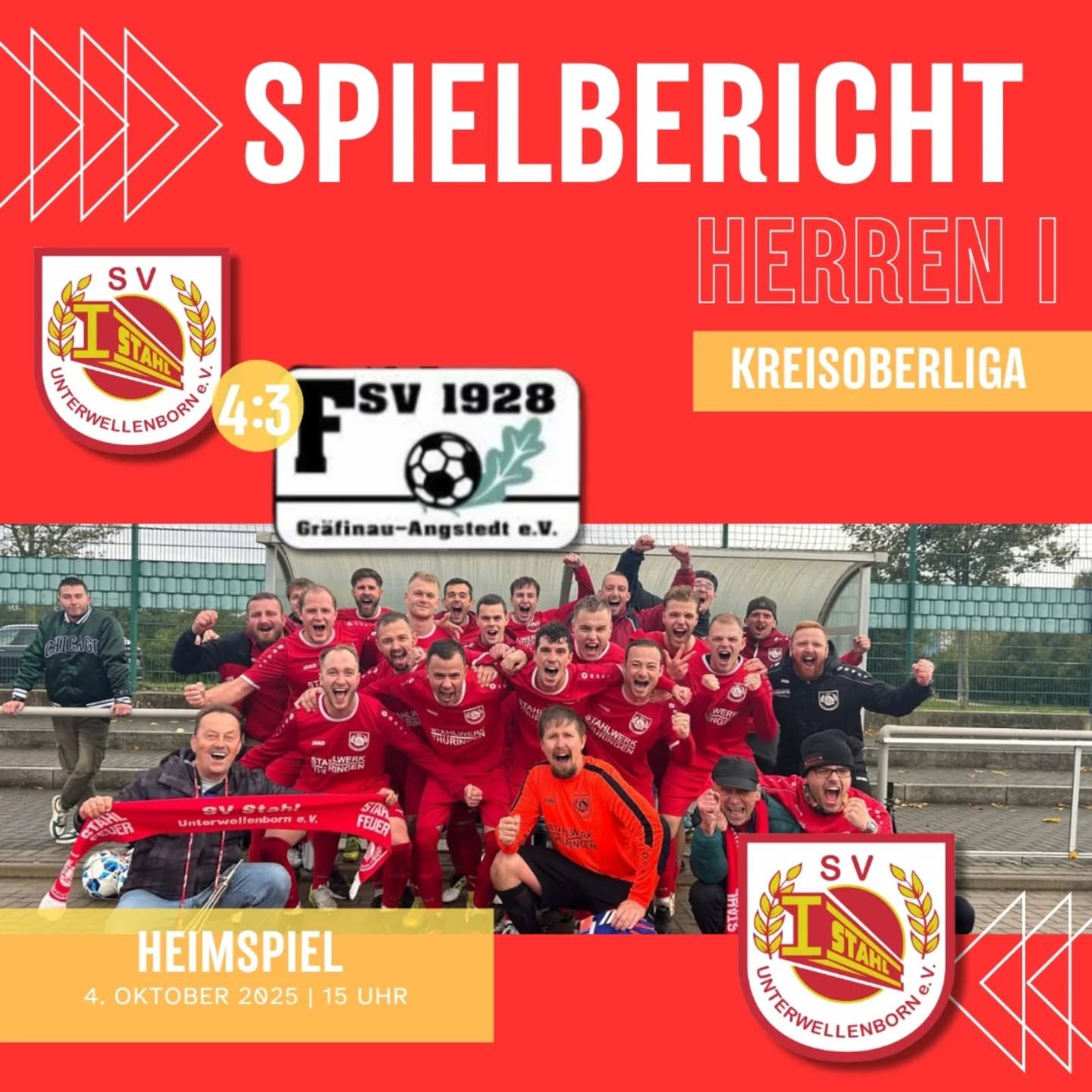SPIELBERICHT HERREN I VS GRÄFINAU-ANGSTEDT ⚽ 4:3 Was für ein Spiel, was für ein Kampfgeist! Der SV Stahl Unterwellenborn hat am Samstag endlich de...